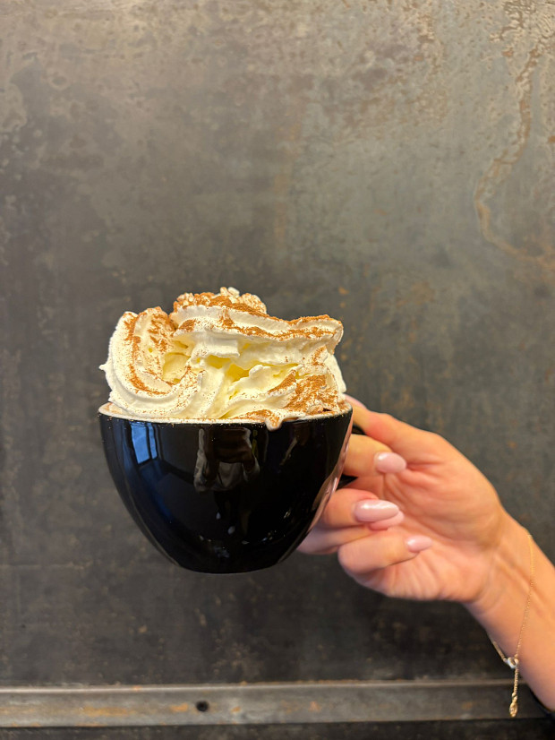 almond or whole milk, chocolate protein, cacao powder, Whipped cream, marshmallow & cacao