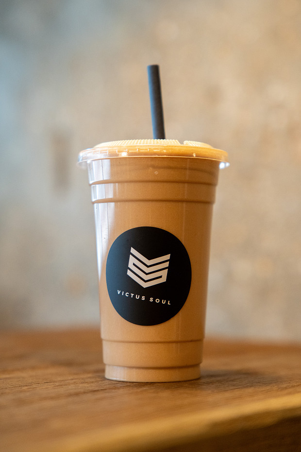 almond milk, vanilla and chocolate protein, coffee