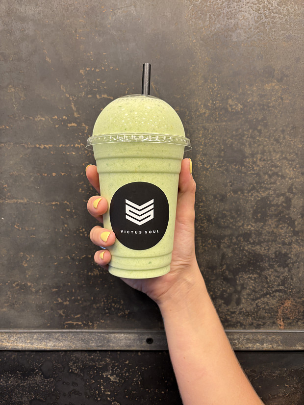 coconut water, vanilla protein, mango, passionfruit, spinach